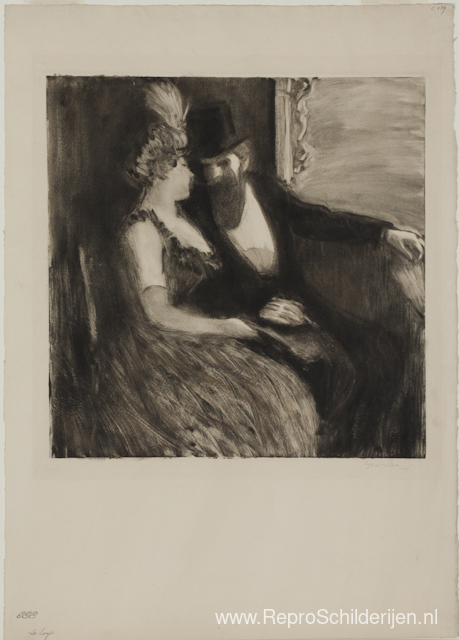 Wij bieden u een ambachtelijke reproductie op doek van het beroemde schilderij 'La Loge ' van Theophile Steinlen, afkomstig uit het Reproductiemuseum.