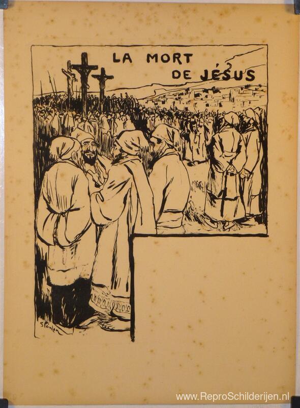 Wij bieden u een ambachtelijke reproductie op doek van het beroemde schilderij 'La Mort de Jesus ' van Theophile Steinlen, afkomstig uit het Reproductiemuseum.