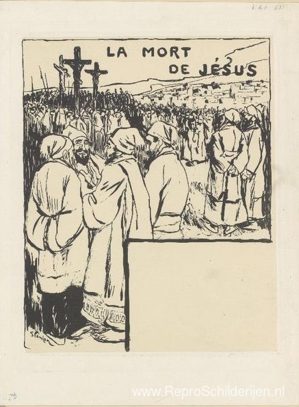 Wij bieden u een ambachtelijke reproductie op doek van het beroemde schilderij 'La Mort de Jesus ' van Theophile Steinlen, afkomstig uit het Reproductiemuseum.