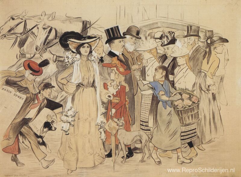 Wij bieden u een ambachtelijke reproductie op doek van het beroemde schilderij 'La Rue' van Theophile Steinlen, afkomstig uit het Reproductiemuseum.