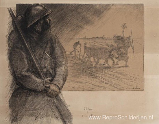 Wij bieden u een ambachtelijke reproductie op doek van het beroemde schilderij 'La Triënnale' van Theophile Steinlen, afkomstig uit het Reproductiemuseum.