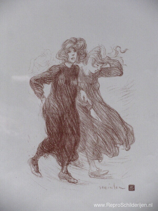 Wij bieden u een ambachtelijke reproductie op doek van het beroemde schilderij 'Le Coup de Vent ' van Theophile Steinlen, afkomstig uit het Reproductiemuseum.