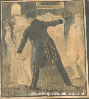Wij bieden u een ambachtelijke reproductie op doek van het beroemde schilderij 'Le Fils ingeschreven bij Sainte Croix ' van Theophile Steinlen, afkomstig uit het Reproductiemuseum.