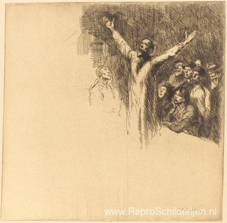 Wij bieden u een ambachtelijke reproductie op doek van het beroemde schilderij 'Le Profete ' van Theophile Steinlen, afkomstig uit het Reproductiemuseum.