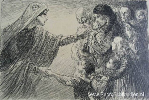 Wij bieden u een ambachtelijke reproductie op doek van het beroemde schilderij 'Le Secours National ' van Theophile Steinlen, afkomstig uit het Reproductiemuseum.