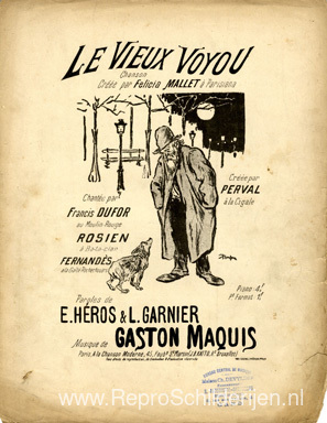 Wij bieden u een ambachtelijke reproductie op doek van het beroemde schilderij 'Le Vieux Voyou ' van Theophile Steinlen, afkomstig uit het Reproductiemuseum.