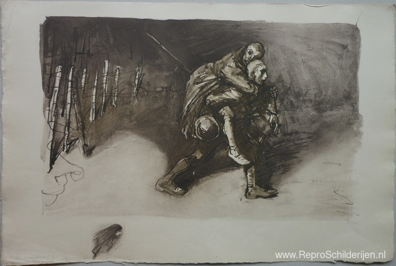 Wij bieden u een ambachtelijke reproductie op doek van het beroemde schilderij 'Les Deux Amis ' van Theophile Steinlen, afkomstig uit het Reproductiemuseum.