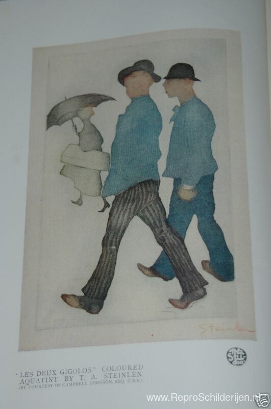 Wij bieden u een ambachtelijke reproductie op doek van het beroemde schilderij 'Les Deux Gigolo’s ' van Theophile Steinlen, afkomstig uit het Reproductiemuseum.