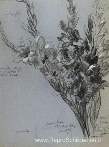 Wij bieden u een ambachtelijke reproductie op doek van het beroemde schilderij 'Les Glaieuls' van Theophile Steinlen, afkomstig uit het Reproductiemuseum.