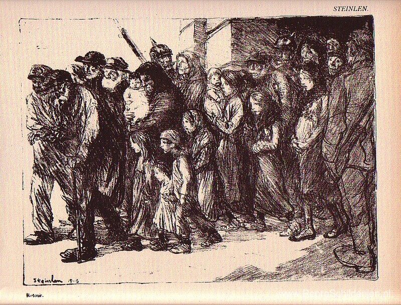 Wij bieden u een ambachtelijke reproductie op doek van het beroemde schilderij 'Les Otages Civils ' van Theophile Steinlen, afkomstig uit het Reproductiemuseum.