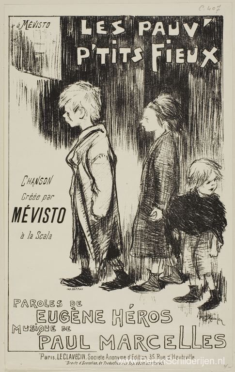 Wij bieden u een ambachtelijke reproductie op doek van het beroemde schilderij 'Les Pauv - Petits Fieux ' van Theophile Steinlen, afkomstig uit het Reproductiemuseum.