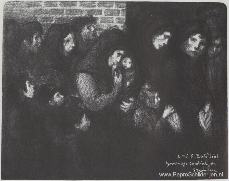 Wij bieden u een ambachtelijke reproductie op doek van het beroemde schilderij 'Les Veuves De Courrières ' van Theophile Steinlen, afkomstig uit het Reproductiemuseum.