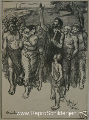 Wij bieden u een ambachtelijke reproductie op doek van het beroemde schilderij 'L'Idee en Marche ' van Theophile Steinlen, afkomstig uit het Reproductiemuseum.