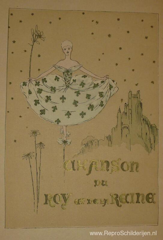 Wij bieden u een ambachtelijke reproductie op doek van het beroemde schilderij 'Lied van de koning en de koningin' van Theophile Steinlen, afkomstig uit het Reproductiemuseum.