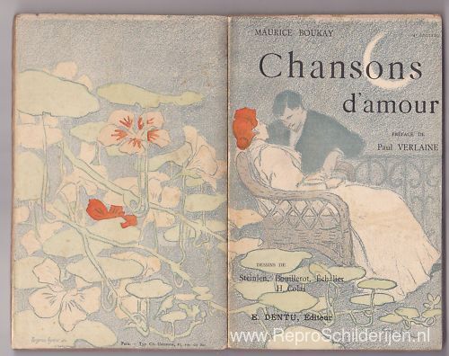 Wij bieden u een ambachtelijke reproductie op doek van het beroemde schilderij 'Liefdesliedjes' van Theophile Steinlen, afkomstig uit het Reproductiemuseum.