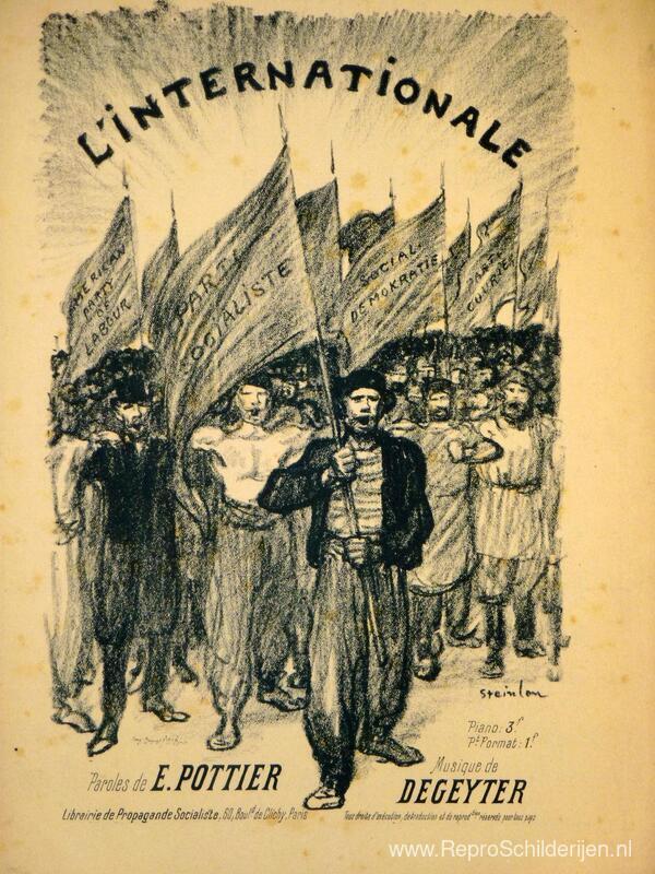 Wij bieden u een ambachtelijke reproductie op doek van het beroemde schilderij 'L'Internationale ' van Theophile Steinlen, afkomstig uit het Reproductiemuseum.