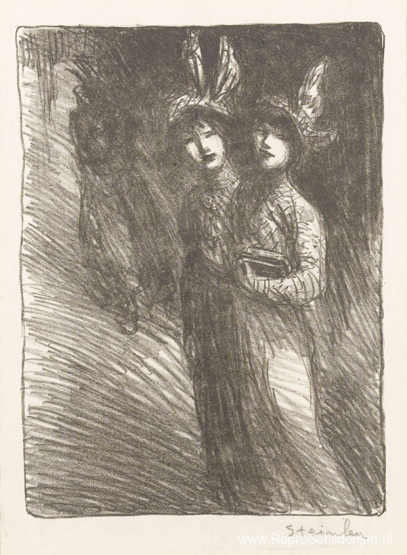 Wij bieden u een ambachtelijke reproductie op doek van het beroemde schilderij 'Lithografie van twee vrouwen ' van Theophile Steinlen, afkomstig uit het Reproductiemuseum.
