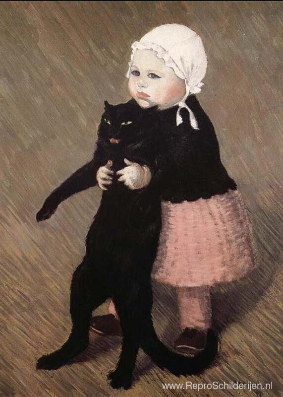 Wij bieden u een ambachtelijke reproductie op doek van het beroemde schilderij 'Meisje met kat' van Theophile Steinlen, afkomstig uit het Reproductiemuseum.