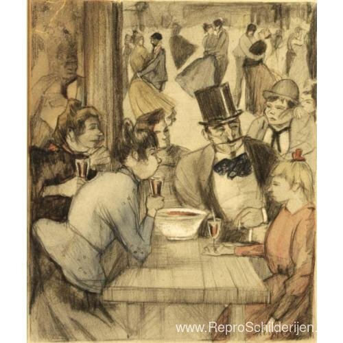 Wij bieden u een ambachtelijke reproductie op doek van het beroemde schilderij 'Mensen in het café ' van Theophile Steinlen, afkomstig uit het Reproductiemuseum.