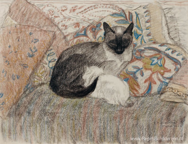 Wij bieden u een ambachtelijke reproductie op doek van het beroemde schilderij 'Moeder Kat' van Theophile Steinlen, afkomstig uit het Reproductiemuseum.