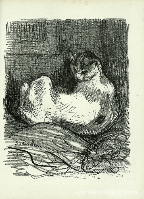 Wij bieden u een ambachtelijke reproductie op doek van het beroemde schilderij 'Moeder kat' van Theophile Steinlen, afkomstig uit het Reproductiemuseum.