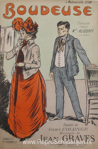 Wij bieden u een ambachtelijke reproductie op doek van het beroemde schilderij 'Mokkend' van Theophile Steinlen, afkomstig uit het Reproductiemuseum.