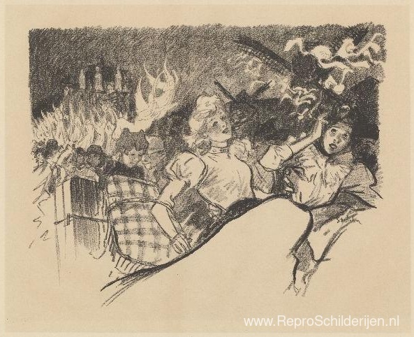 Wij bieden u een ambachtelijke reproductie op doek van het beroemde schilderij 'Montmartre ' van Theophile Steinlen, afkomstig uit het Reproductiemuseum.