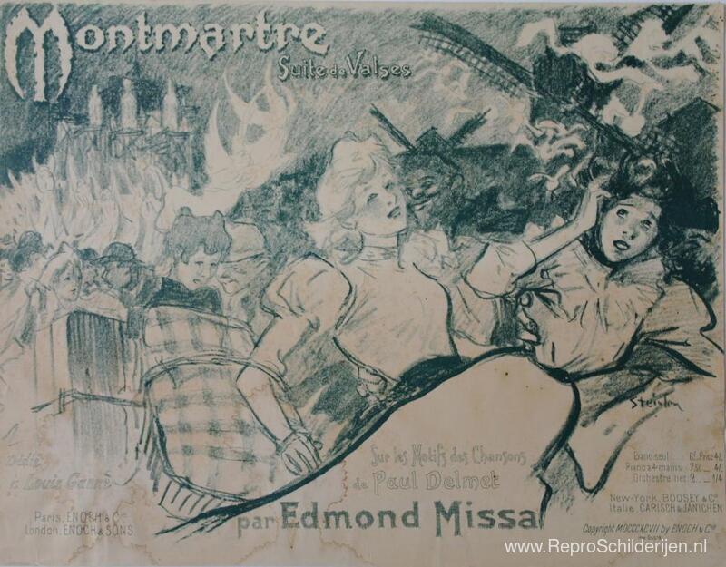 Wij bieden u een ambachtelijke reproductie op doek van het beroemde schilderij 'Montmartre ' van Theophile Steinlen, afkomstig uit het Reproductiemuseum.