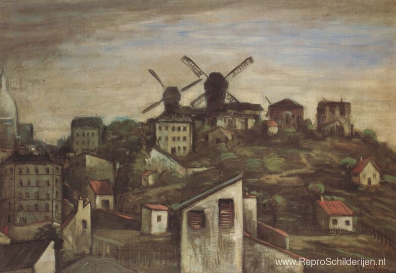 Wij bieden u een ambachtelijke reproductie op doek van het beroemde schilderij 'Montmartre-windmolens ' van Theophile Steinlen, afkomstig uit het Reproductiemuseum.