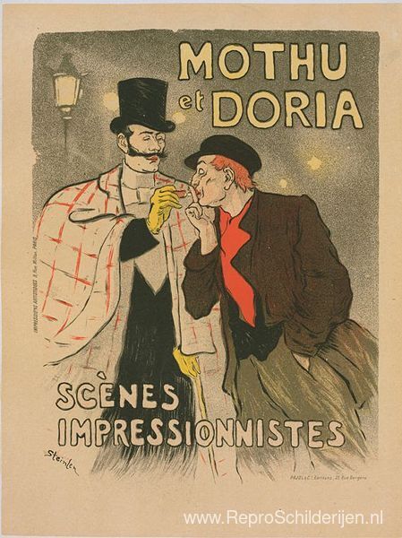 Wij bieden u een ambachtelijke reproductie op doek van het beroemde schilderij 'Mothu en Doria ' van Theophile Steinlen, afkomstig uit het Reproductiemuseum.