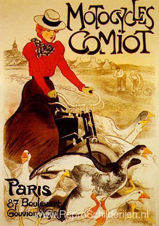 Wij bieden u een ambachtelijke reproductie op doek van het beroemde schilderij 'Moto's Comiot ' van Theophile Steinlen, afkomstig uit het Reproductiemuseum.