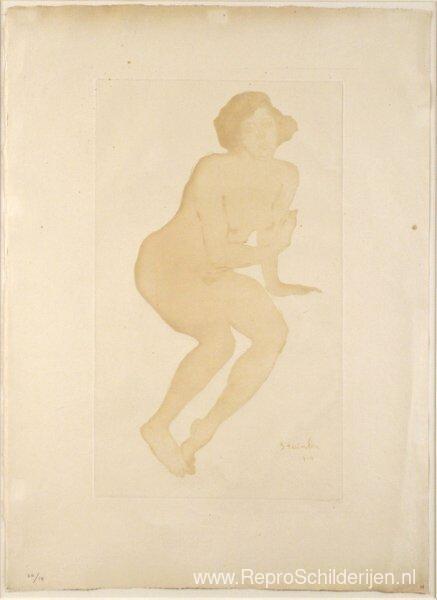 Wij bieden u een ambachtelijke reproductie op doek van het beroemde schilderij 'Naakt etsen' van Theophile Steinlen, afkomstig uit het Reproductiemuseum.