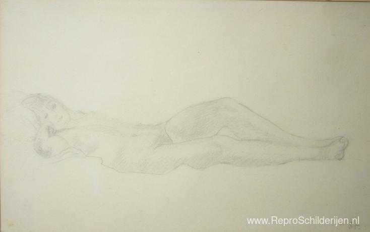 Wij bieden u een ambachtelijke reproductie op doek van het beroemde schilderij 'Naakt potlood' van Theophile Steinlen, afkomstig uit het Reproductiemuseum.