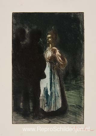 Wij bieden u een ambachtelijke reproductie op doek van het beroemde schilderij 'Nachtelijke conferentie' van Theophile Steinlen, afkomstig uit het Reproductiemuseum.