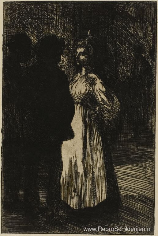 Wij bieden u een ambachtelijke reproductie op doek van het beroemde schilderij 'Nachtelijke conferentie' van Theophile Steinlen, afkomstig uit het Reproductiemuseum.