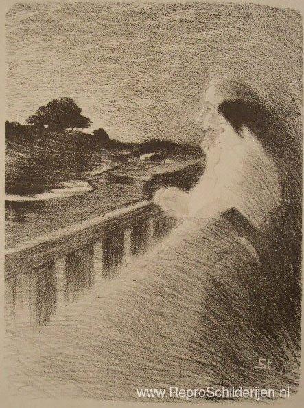 Wij bieden u een ambachtelijke reproductie op doek van het beroemde schilderij 'Paar zittend op balkon' van Theophile Steinlen, afkomstig uit het Reproductiemuseum.