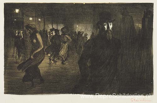 Wij bieden u een ambachtelijke reproductie op doek van het beroemde schilderij 'Parijs La Nuit ' van Theophile Steinlen, afkomstig uit het Reproductiemuseum.