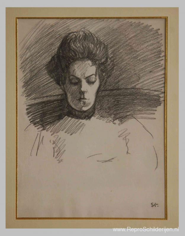 Wij bieden u een ambachtelijke reproductie op doek van het beroemde schilderij 'Portret van mevrouw Steinlen ' van Theophile Steinlen, afkomstig uit het Reproductiemuseum.