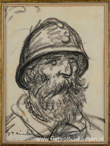 Wij bieden u een ambachtelijke reproductie op doek van het beroemde schilderij 'Portret van Poilu ' van Theophile Steinlen, afkomstig uit het Reproductiemuseum.