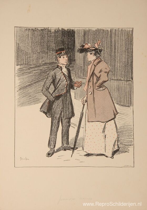 Wij bieden u een ambachtelijke reproductie op doek van het beroemde schilderij 'Première Armes' van Theophile Steinlen, afkomstig uit het Reproductiemuseum.
