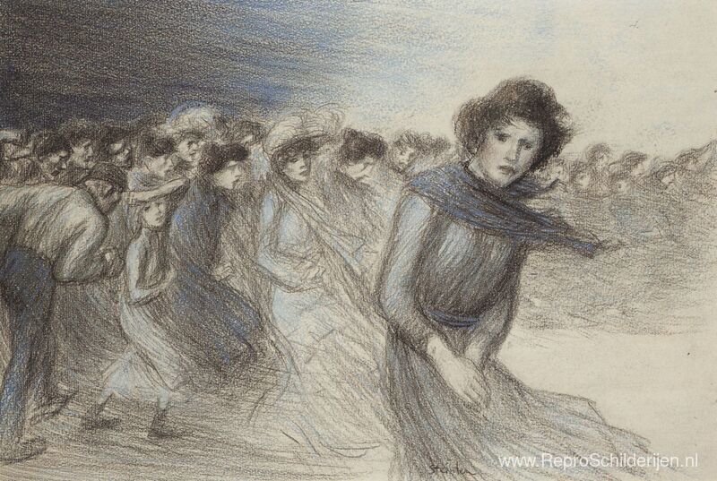 Wij bieden u een ambachtelijke reproductie op doek van het beroemde schilderij 'Proletariërs ' van Theophile Steinlen, afkomstig uit het Reproductiemuseum.