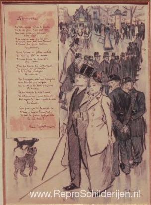 Wij bieden u een ambachtelijke reproductie op doek van het beroemde schilderij 'Promenade ' van Theophile Steinlen, afkomstig uit het Reproductiemuseum.