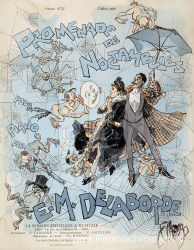 Wij bieden u een ambachtelijke reproductie op doek van het beroemde schilderij 'Promenade de Noctambules' van Theophile Steinlen, afkomstig uit het Reproductiemuseum.