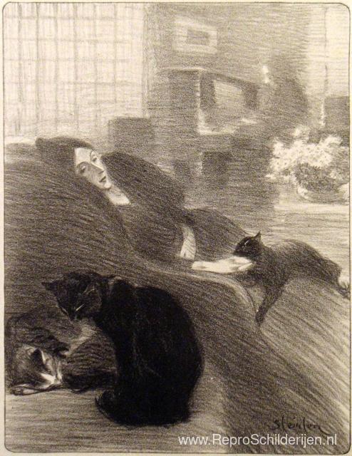 Wij bieden u een ambachtelijke reproductie op doek van het beroemde schilderij 'Quand Nous Serons Vieux ' van Theophile Steinlen, afkomstig uit het Reproductiemuseum.