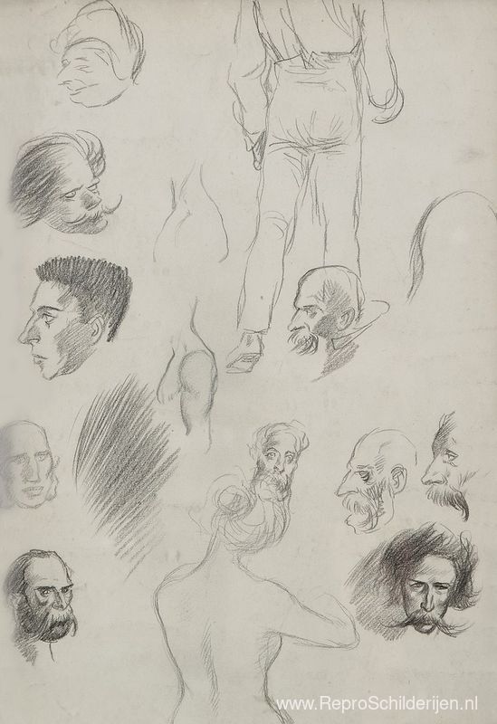 Wij bieden u een ambachtelijke reproductie op doek van het beroemde schilderij 'Schetsen van mensen ' van Theophile Steinlen, afkomstig uit het Reproductiemuseum.