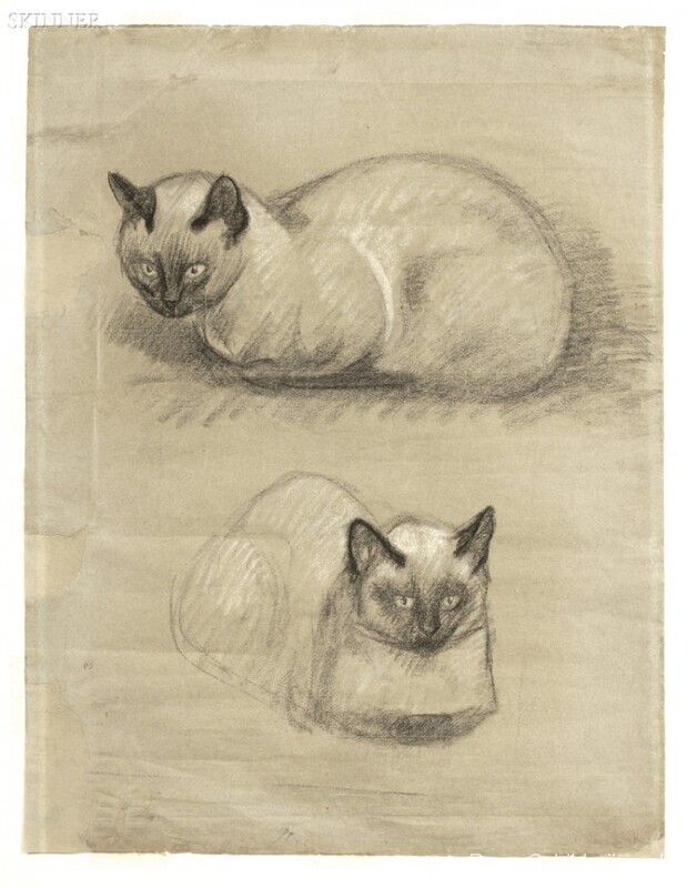 Wij bieden u een ambachtelijke reproductie op doek van het beroemde schilderij 'Siamese katten' van Theophile Steinlen, afkomstig uit het Reproductiemuseum.