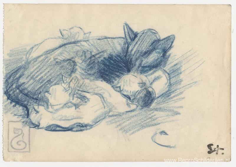Wij bieden u een ambachtelijke reproductie op doek van het beroemde schilderij 'Slapende katten' van Theophile Steinlen, afkomstig uit het Reproductiemuseum.