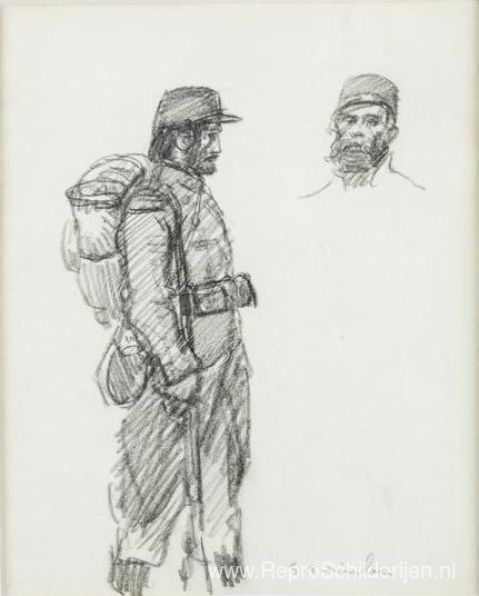 Wij bieden u een ambachtelijke reproductie op doek van het beroemde schilderij 'Soldaten ' van Theophile Steinlen, afkomstig uit het Reproductiemuseum.