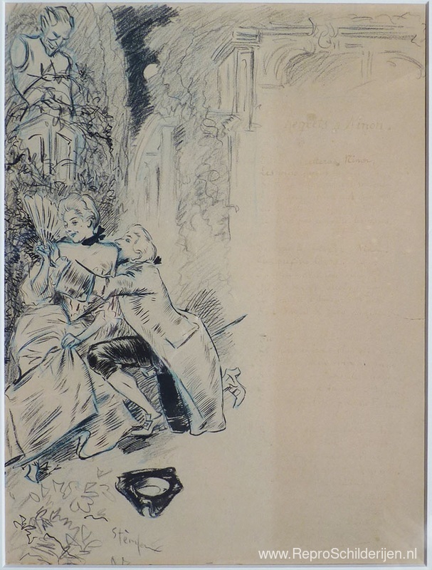 Wij bieden u een ambachtelijke reproductie op doek van het beroemde schilderij 'Spijt van A Ninon ' van Theophile Steinlen, afkomstig uit het Reproductiemuseum.