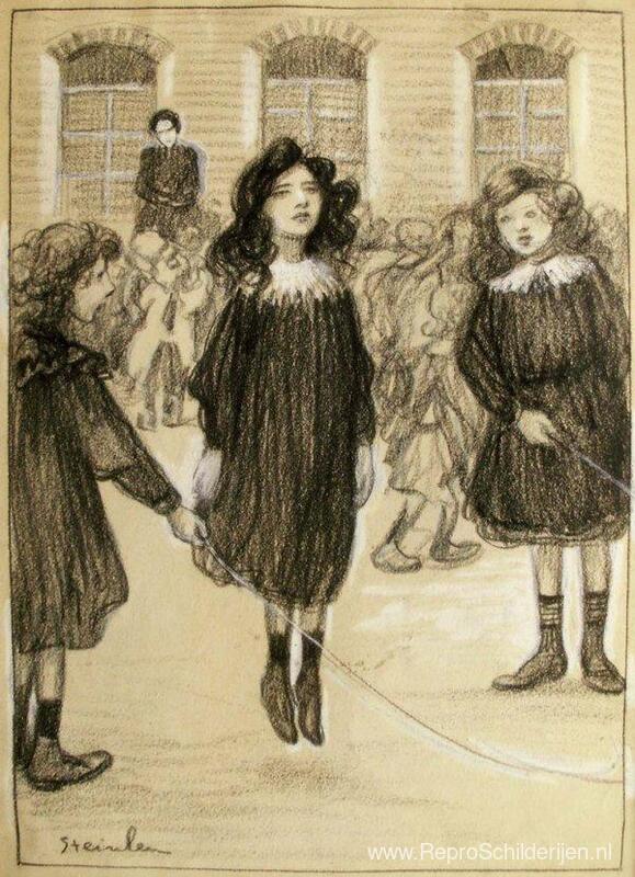 Wij bieden u een ambachtelijke reproductie op doek van het beroemde schilderij 'Springtouw' van Theophile Steinlen, afkomstig uit het Reproductiemuseum.